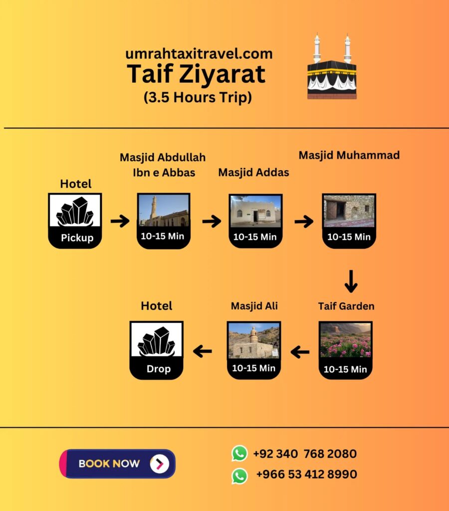 You can easily book a Taif ziyarat taxi through Our Website Umrah Taxi Travel or by contacting directly via